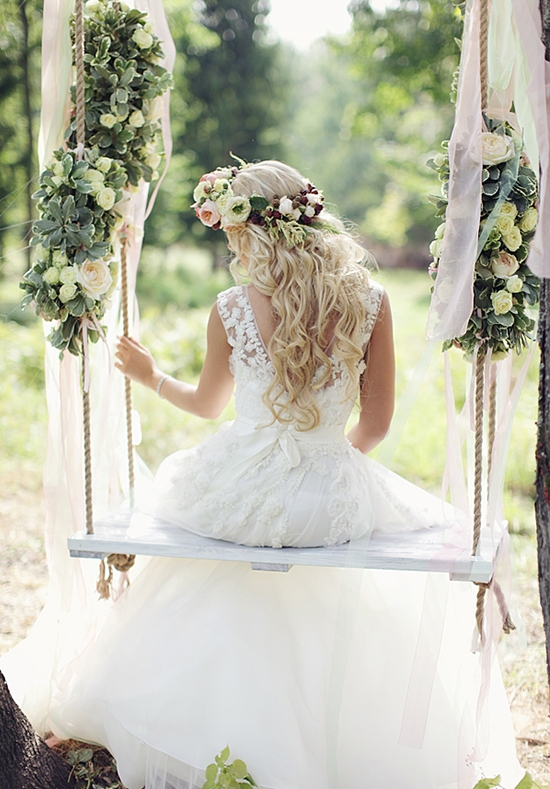 Thay vì những kiểu tóc cầu kì, cô dâu có thể biến mình thành một nàng công chúa kiêu sa lộng lẫy với những kiểu tóc đơn giản, kết hợp vòng hoa. Gợi ý những kiểu hoa cưới cài đầu cô dâu.